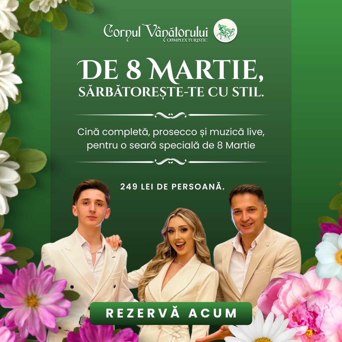 🌸 Pe 8 Martie, te așteptăm la Cornul Vânătorului să sărbătorești feminitatea, eleganța și bucuria de a fi tu!