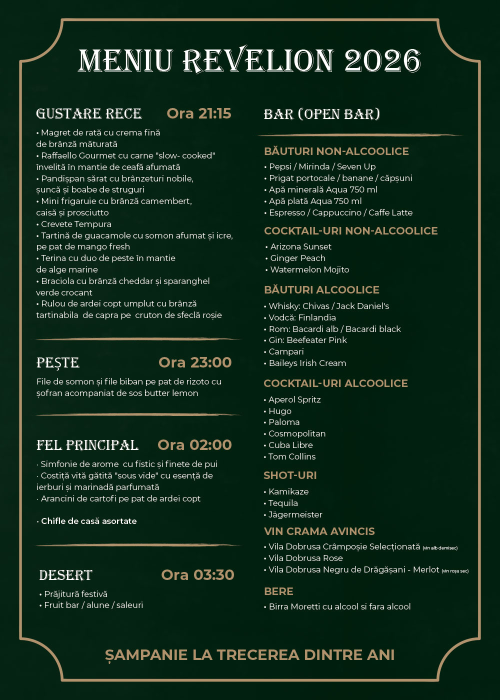 🍾 Cină festivă de Revelion – 31 decembrie